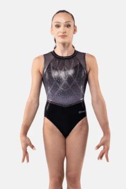 Lights, Camera, Sparkle! 💎 Get ready to steal the show in our Asteria Leotard which is absolutely stunning. This Mystique body leotard has a high neckline with delicate ruching along the chest, beautiful stonework, a waistband, and an open clasp and keyhole back.