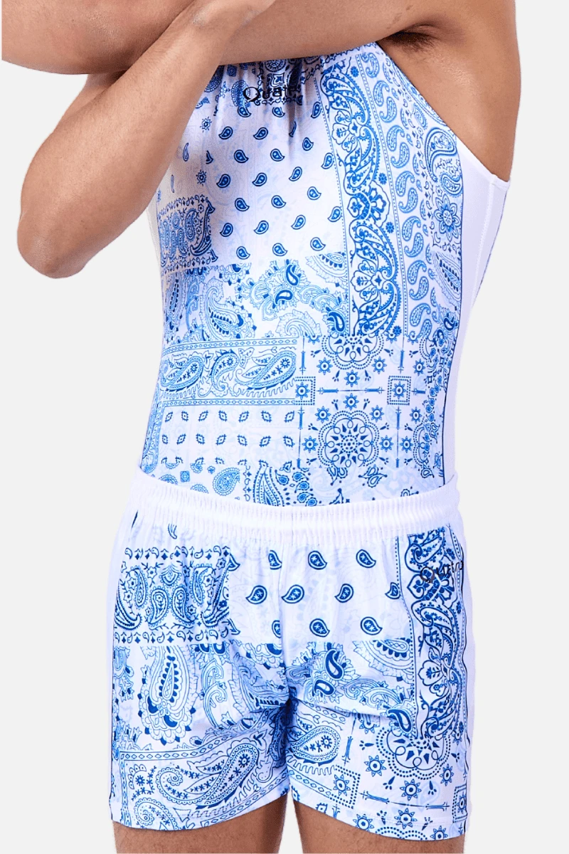 Fashion-forward and bold in his pattern choice for this specially designed Quatro Men’s Leotard by Courtney Tulloch, is sure to excite! Feel impowered with your skill upgrades and new goals set in this one-of-a-kind men’s gymnastics leotard. Quatro’s Men’s Leotard designs are based on our top-notch singlet pattern, specially crafted to fit the male body better. We’ve designed it with a boxer cut leg to avoid any uncomfortable bunching, making it the most comfortable choice in men’s gymnastics wear!