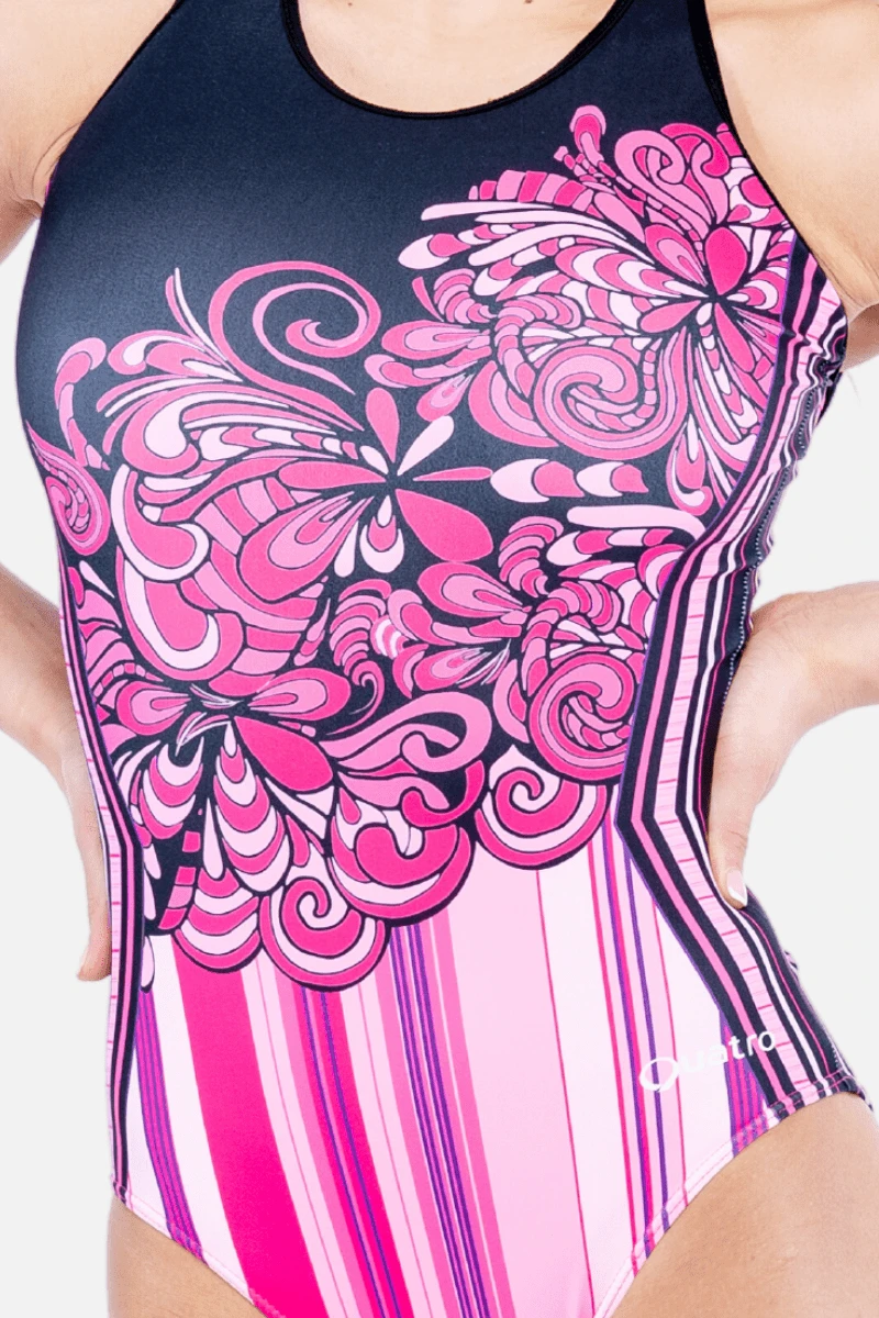 For a look as elegant and as glamorous as you are, look no further than Darling! This bold super soft style is packed with colour and beautiful patterns, with different shades of pink making this leotard design pop. With a gorgeous strappy back too, Darling is perfect from every angle!
