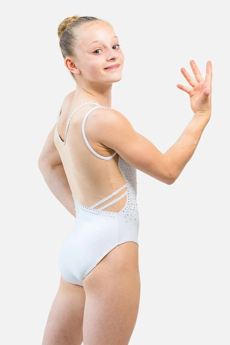 Get Runway ready in the Elysian White leotard! This stunning white leotard with delicate undertones is perfect for summer training. The light colors are sure to keep you cool during hot training sessions, and the three different skin tone options will compliment most skin colors. If you want to take your training to the next level this summer, this leotard is perfect for you!