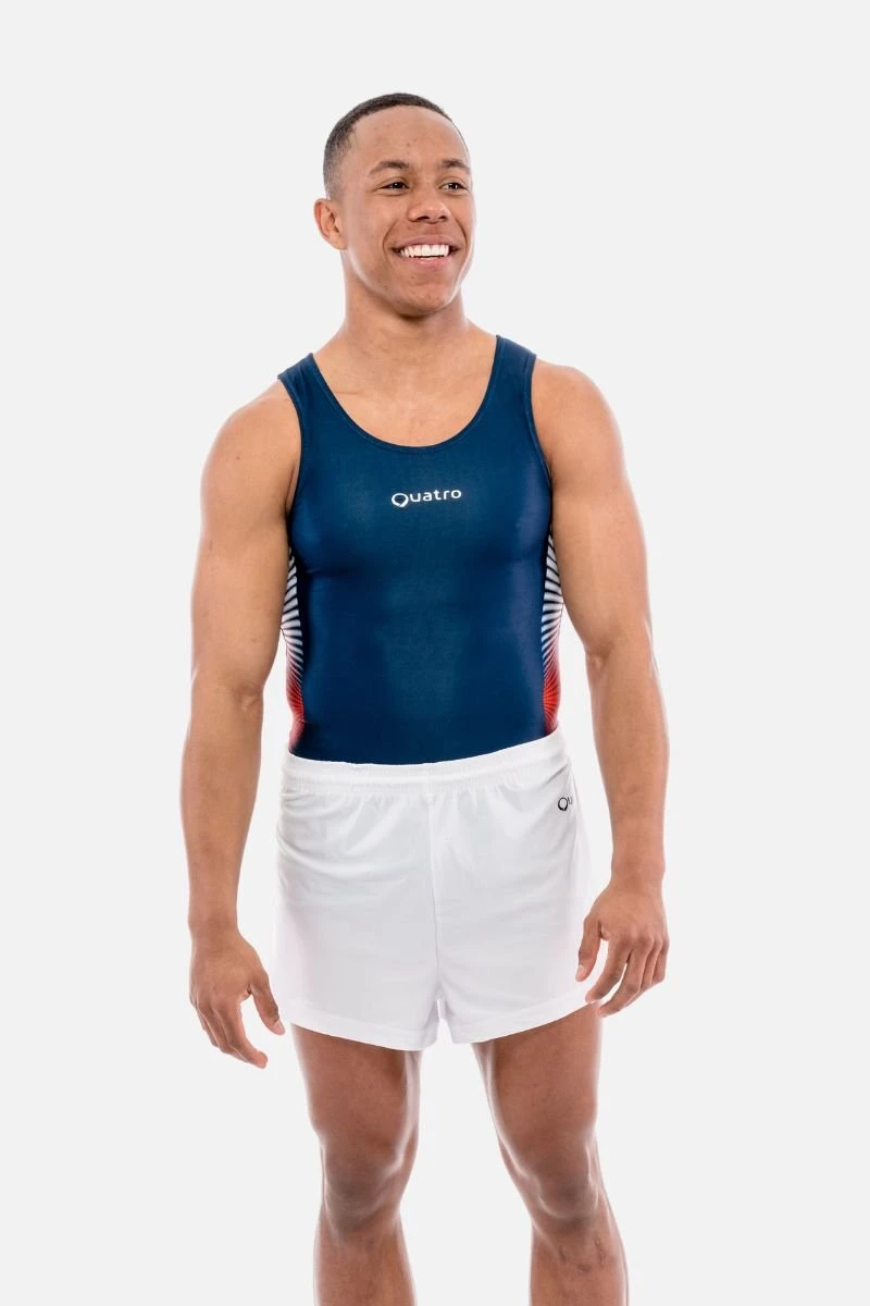 Quatro’s Men’s Leotard designs are based on our top-notch singlet pattern, specially crafted to fit the male body better. We’ve designed it with a boxer cut leg to avoid any uncomfortable bunching, making it the most comfortable choice in men’s gymnastics wear!