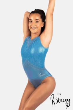 Paragon is every gymnasts dream! This baby blue girls leotard has the perfect amount of shimmer and delicate crystal details. The back of this leotard features mesh, a criss-cross back and stones. Paragon is fit for a princess!