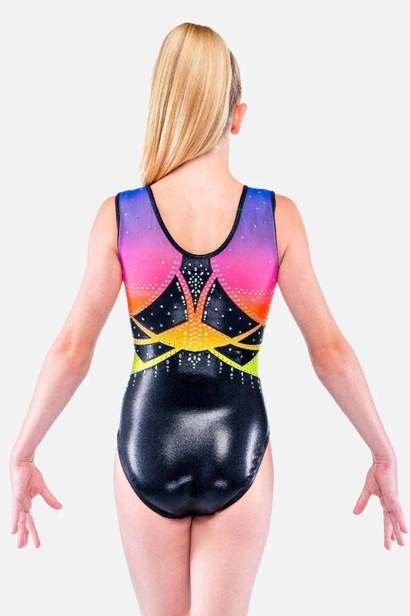 If you are looking for the perfect gymnastics leotard, look no further! The Runway short sleeve leotard offers class and safistication with a stunning stone pattern, ombre mesh and intricate applique. The mystic body provides the best comfort and durability for any routine. Team up with Black Handguard Bag and Scrunchie to complete the look.